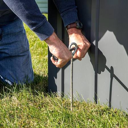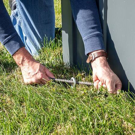 Extend the life of your ShelterLogic storage solution with the innovative corkscrew design. The augers dig in fast and hold on tight, providing strong tethering once in place. Along with the heavy duty construction, the portability and easy removal of the auger anchors makes these reusable time and time again. Quick clamp on wire tie-downs included install in minutes to legs for a rock solid connection.