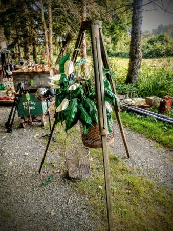 Stand hanging plant holder - to place a chandelier in between or to place a spot on top. When placed lower you could place a decorative object on, a lamp , flowers etc