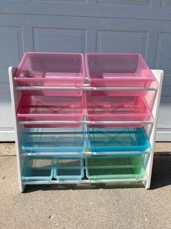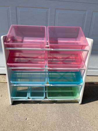HEAVY DUTY TOY BIN ORGANIZER - 3 DOWELS ON EACH LEVEL vs 2 WITH THE OTHER BRANDS - PLASTIC BINS ARE THICKER vs OTHER BRANDS - PLASTIC BINS ARE LARGER vs OTHER BRANDS