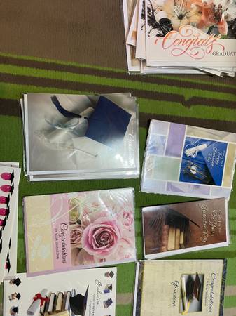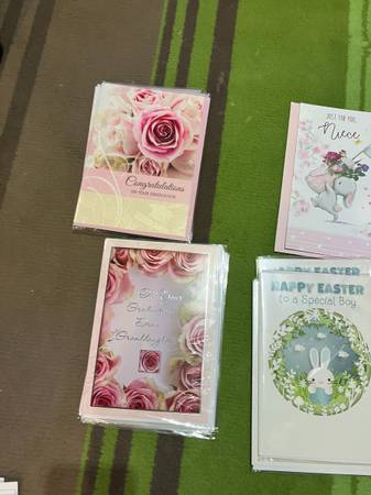 All brand-new Confirmation, Birthday , Easter, Lot of Graduations, Valetines plus others. All in Plastic wrap except a few. All not shown in pictures. Cash only 25.00 about 150 cards Buy and share...