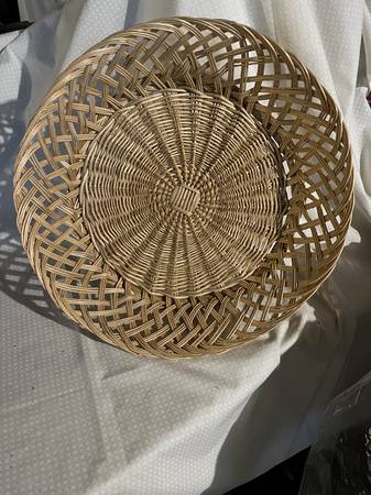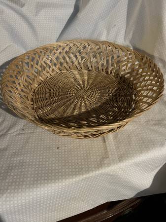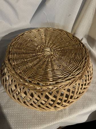 Vintage Round Woven Wicker Basket / Tray Measures: 3.5" high 15.5" diameter at top 12" diameter at bottom Perfect condition! Pick up today for $28!