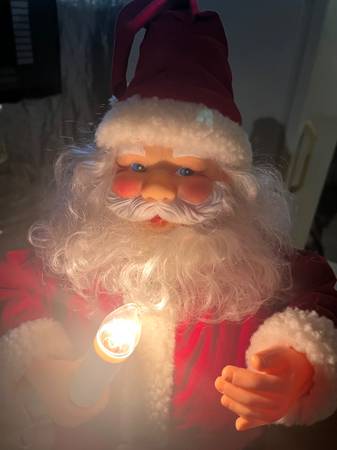 Original, Vintage "Motion-ettes of Christmas" Santa Holding Candle Lites up and has life-like motion Approximately 24" high 1988 model Great working condition! Comes with original box (shows shelf...