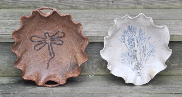 Fine Art Pottery! Photos do not do this justice --at--all! Beautiful pieces! Both POP! Dragonfly and “Ruffle” edged “pie plates. No chips. No cracks. No splits.