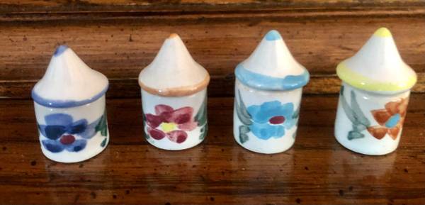 Two Miniature sets of Porcelain Porcelain mini tea set Porcelain mini canisters Perfect Condition..no chips or crack's Both sets $10.