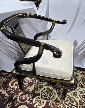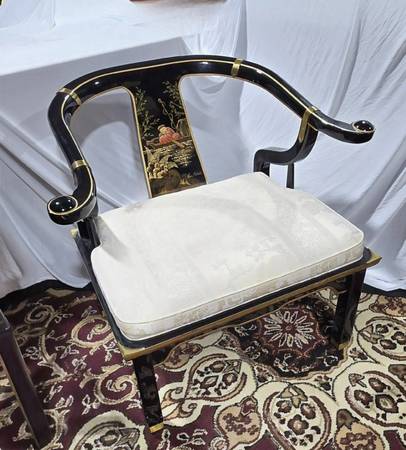 Century Chair Co Oriental Black Lacquered Chinoiserie Armchair