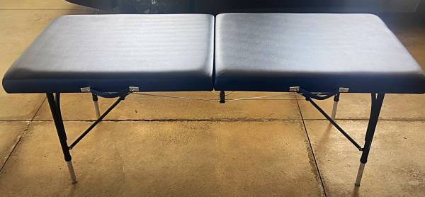 I have a pre-owned Oakworks Portable Manipulation Massage Table. Excellent condition-Like new. Quality table- very sturdy with metal legs. Made in the USA. Dimensions are 27W x 24-34H x 73L. Height is adjustable. Color is sapphire blue. A face cradle is included, however it has no cushion. Cash Only. Pick-up Only.