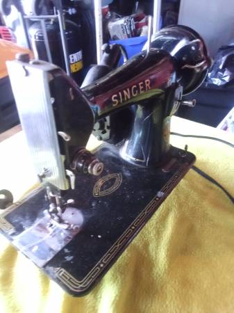 Singer 99k in nice shape. Has working light and foot pedal. This sewing machine was made at the famous Kilbowie factory, Clydebank, Scotland in 1933. 65 or b/o 716 331 09six9