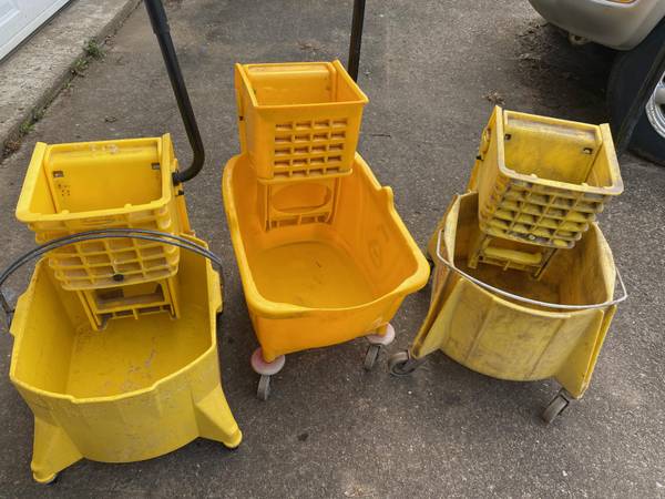 3 rubbermaid mop bucket with wringers $20 each FIRM Select "more ads by this user" to see other items Dave email, call or text me 5eight5-613-8770. ***Will delete ad when sold****
