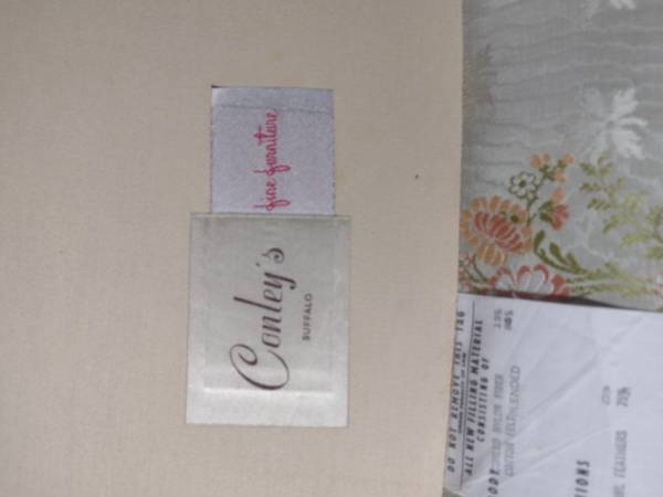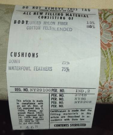 The wood has a few marks here and there, the fabric looks amazing, the cushions ae stuffed well with down an feathers and so comfortable. Your not going to find such a nice piece of Buffalo history better then this.