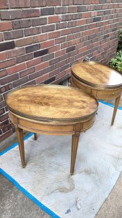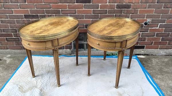 Baker Furniture French End Tables with Brass Galleries $1095.00