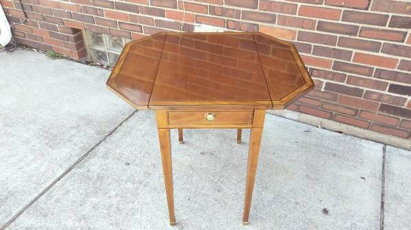 Baker Furniture Inlaid Mahogany Pembroke Table (H 27", W 17", D 24") one of two available $695.00 ea.