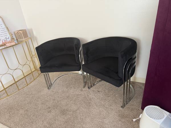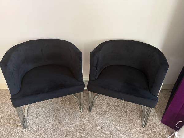 For sale: Set of 2 black and silver accent chairs in pristine condition! Paid $200+ each, therefore we’re firm on our asking price of $200! Must be purchased together! Delivery not available.