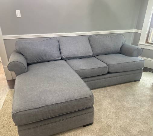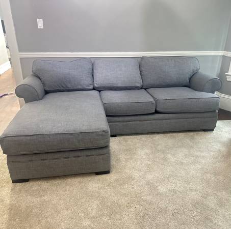 Comfortable and stylish blue sectional in good condition. Perfect for a living room, family room, or apartment. No major stains, rips, or damage — just normal wear. Free delivery in the Buffalo area.