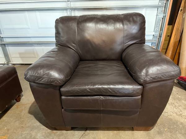 Brown leather arm chair, excellent condition. Was in a home with no animals or smokers. Very plush and comfortable!