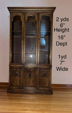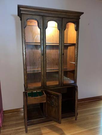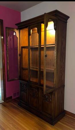 Solid China cabinet with inside lighting and silverware drawer and storage. In like new condition. $375.00. Must pick up and hall away.