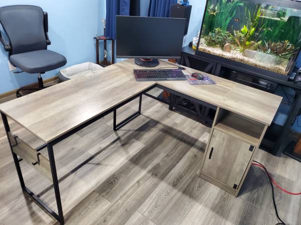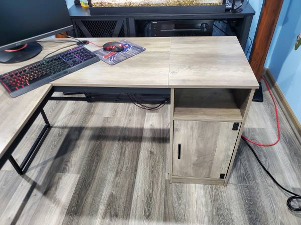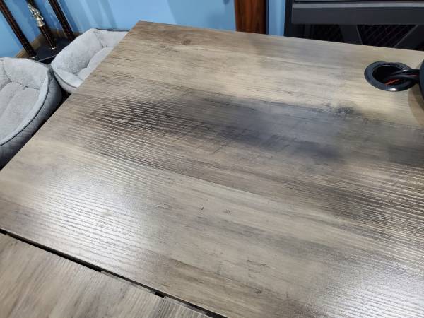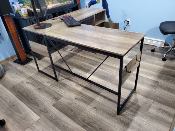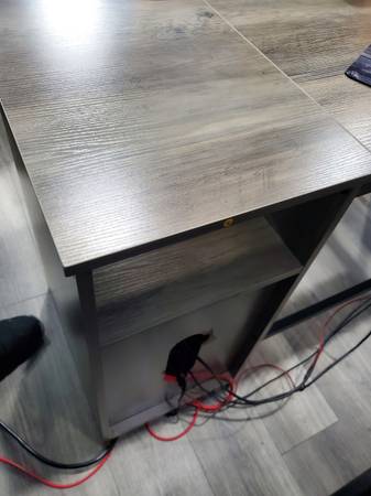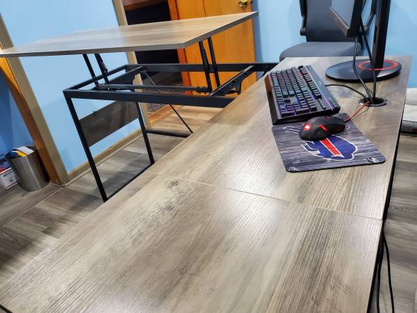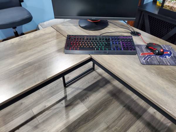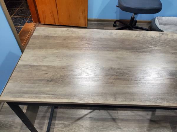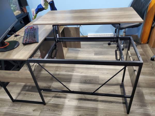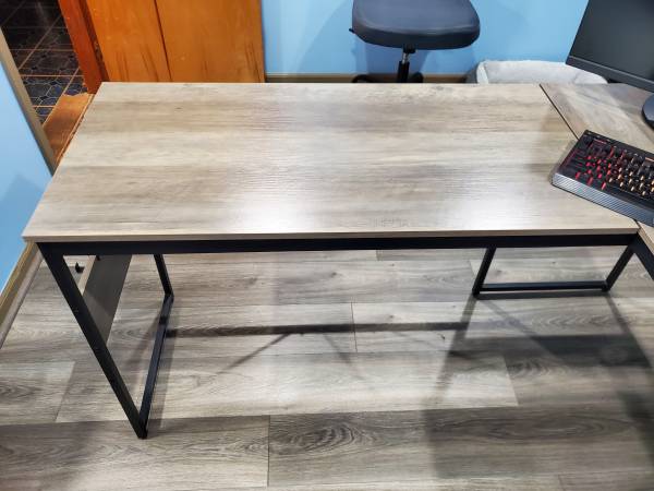 Like new metal frame computer desk w/ elevated work table. Beautiful condition no marks or scratches. Text . no emails. Cash only firm on price.