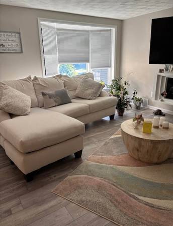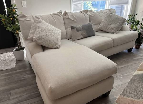 Like New......Moving,,Cream Color, Comfortable..Purchased at Calvin"s Furniture on Maple Road !!! * smoke and pet free home. Measurements of couch: 95 inches in length 39 inches in width on side w/o...