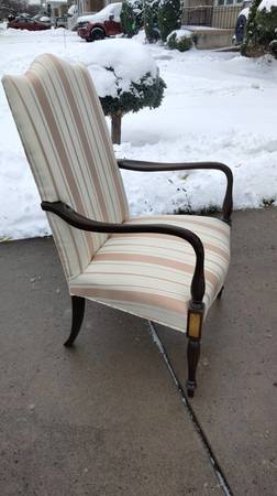 Hickory Chair Sheraton Style Lolling Chair H 43", W 26", D 24"(A few marks on the upholstery, no attempt made to clean) $495.00
