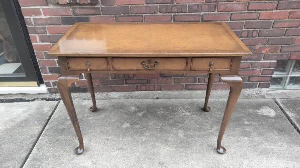 Kittinger Queen Anne Style Burled Top Mahogany Desk H 29 1/4", W 40", D 20". $795.00