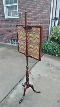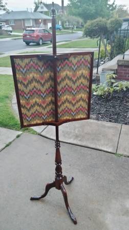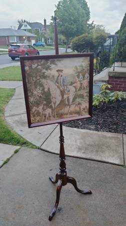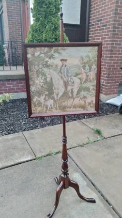 Mahogany Queen Anne Style Embroidered Fire Screen $125.00