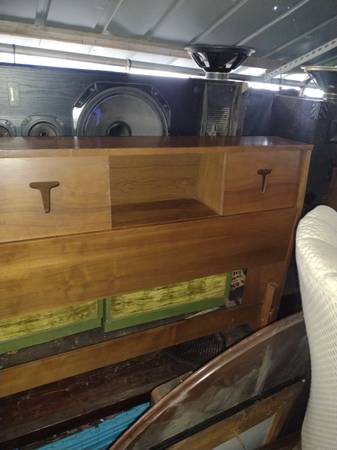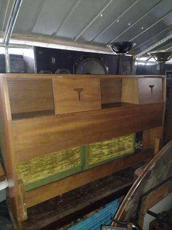 Mid-Century Modern (likely late 1960s/early 1970s).Queen Size The combination of the walnut veneer, the built-in storage, Sliding doors "Retro MCM" …cut out pulls