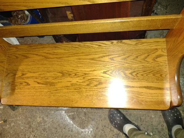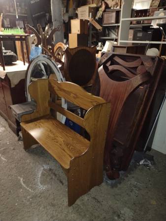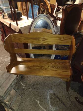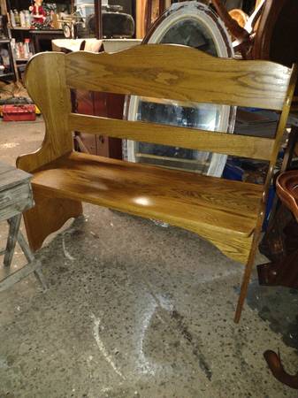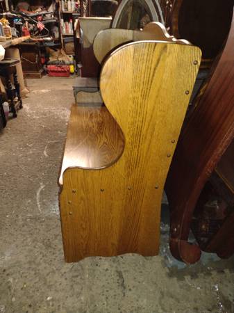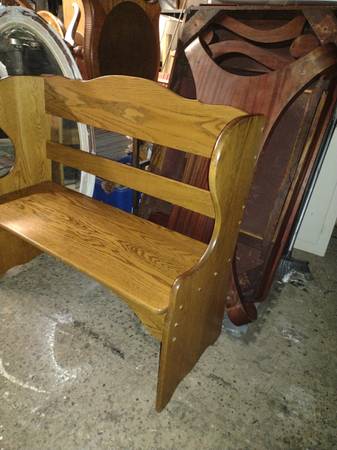 Decor Style Mid-Century Modern Date Range 1960-1969 Solid Tiger Oak Vintage Pennsylvania Dutch Amish Handcrafted Wooden Entrance Bench Local Delivery Available Long Distance Shipping Available We...