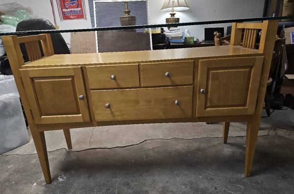 Bought 3 years ago and never used. Thick glass top. In perfect shape. 54" X 38" X 18"
