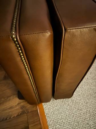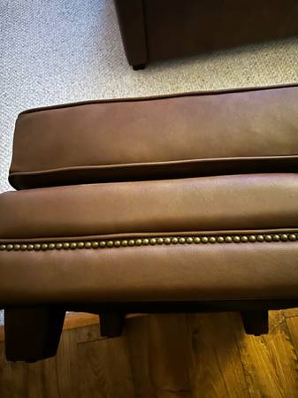 Omnia Leather 100% Top grain leather, cost $1200 new and it’s a year old from storage. Top quality furniture.