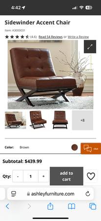 Sidewinder accent chairs with stools - chairs were bought at Ashley’s and stools from Amazon. 2 chairs w/ stools — Asking $275 each. Had less than a year. Perfect condition.