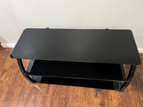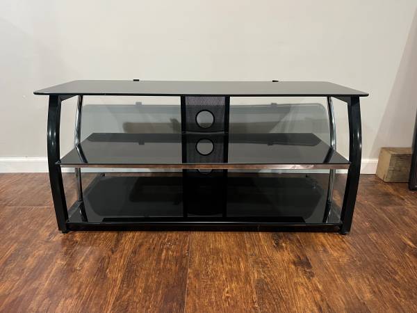 Glass tv stand, great condition with no scratches or cracks. 44in length, 18in width, 20in height