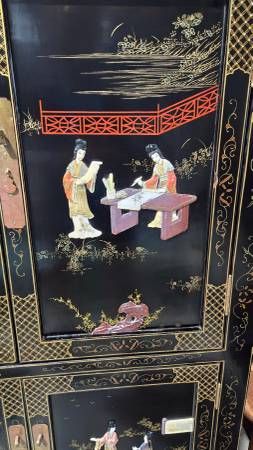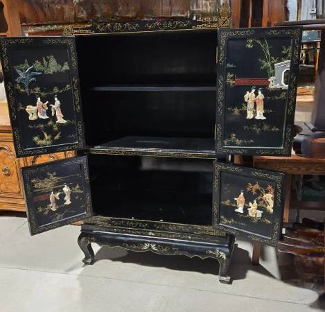 Beautiful Stone inlays & Handpainted Designs on the Sides, the front 4 Doors. Not only on the front but the inside of the doors also.