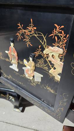 This is better looking in person, the black lacquer has a lot of reflections in the photos.