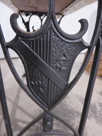This is a nice little bench with a shield design.
