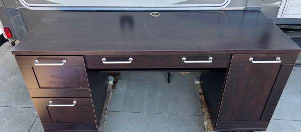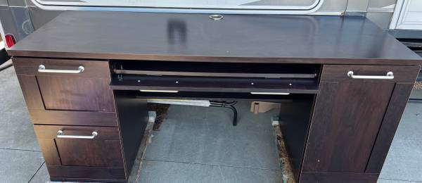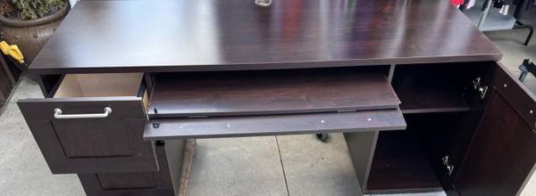 Nice Desk MUST GO Keyboard drawer, file drawers and place for printer if needed. Also Hole in the top for power cords. 65 1/2" long x 23 1/2" deep x 30" tall $100.00 Excellent Condition