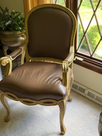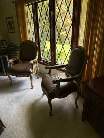 Beautiful sable leather chair , and hard wood. Barley used. 1700$ each new! Now 700.!! $.for both Looking for receipts… hope I find.