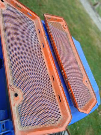 Kubota Tractor Engine Dust Screens. Not sure of the model or size they came off of. If I remember correctly they came off a 35HP ISH Tractor. You need to remove these to put on a bucket.