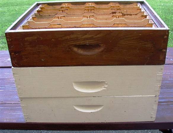 Split section comb honey super kit. Complete 28 split section boxes with foundation. Fully assembled. Three available @ $50 each. One extra refill kit (30 split frame boxes and 7 sheets thin surplus...