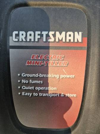 Craftsman Electric Mini-tiller. Easy electric start Slight wear No rust Volts 120 Amps 65 Hertz 60