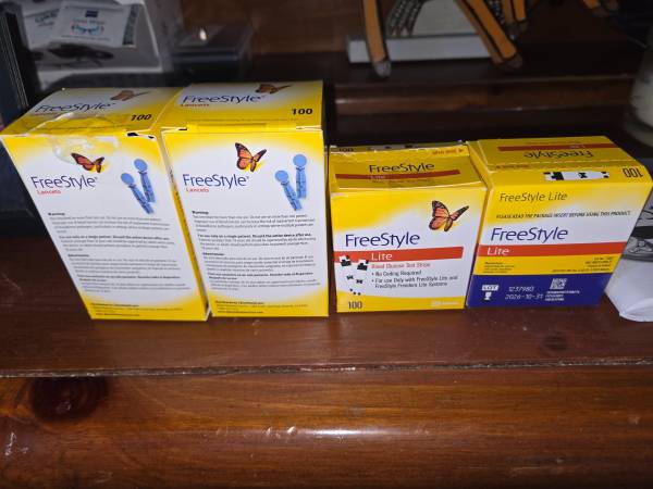 Brand new Freestyle Lite Blood Glucose Meter. I have included two boxes of 100 count lancets and two boxes of 100 count test strips. I never used this meter as I found a better one. I have the original instruction book. Pickup only no delivery available.