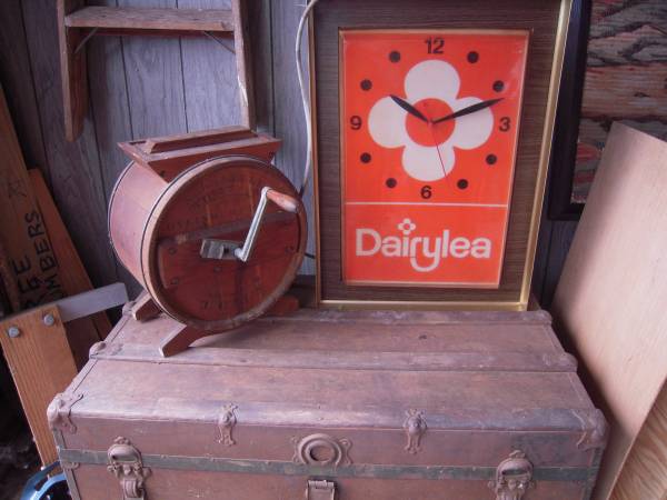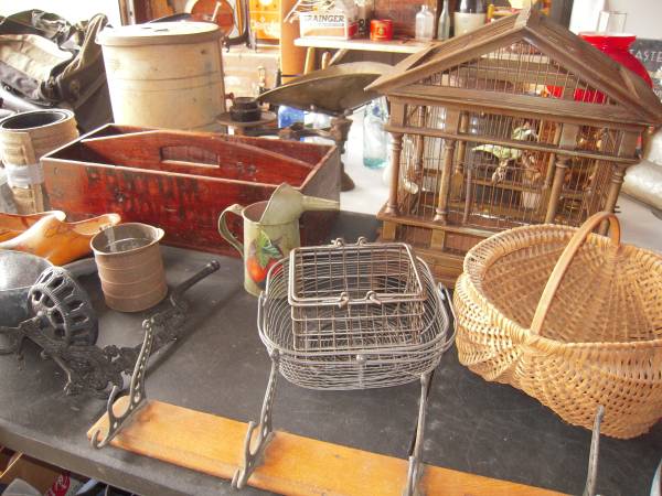 Buffalo, Lockport and Niagara Falls collectibles, prints, bottles, tins and books, Schwinn “Bicycle Built for Two”, loads of Disney and Mickey Mouse collectibles(clock, watches, stuffed animals, dishes, banks and more), Dairylea clock, butter churns, Antique pie cupboard, scales, coffee grinder, bottles, baskets, wood boxes, soda crates, tin whale shelf, Ethan Allen dressers, night stands, hutch and side tables, queen bed, brass trumpet, clarinet, Vintage gumball machines, Maxfield Parish prints, Vintage Fisher Price toys, Hummels, commode, desk/bookshelf, cedar chest, set of 6 press back chairs, farm table, Howard Miller clock, Naval Academy items, child's rolltop desk and furniture, Waterford, crystal, Franciscan “Desert Rose” dishes, bone china, sterling, oil lamps, pine table, wash stand, Vintage toys, school desk, sofabed, Victorian chair, Oriental style rug, book shelves, Christmas items, Vintage Schwinn bicycle, Snapper riding mower(almost new, 33” cut, 500cc Power Built), OLD TOWN CANOE (Guide 147- USED 10 TIMES), garage full of lawn, hand and power tools, folding badminton table, park bench, fishing poles, Perry's Ice Cream patio umbrella, Amish bench and chairs, scaffolding, antique plow, rototiller, ladders, trunk and MUCH, MUCH MORE! WORTH THE DRIVE!