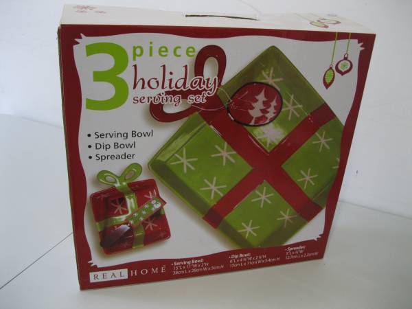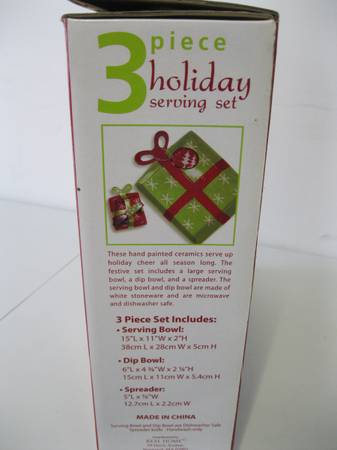 Real Home 3 Pc. Hand Painted Christmas Holiday Serving Set (2) Bowls & Spreader Brand NEW! Never used or opened. Please call or text to inquire.