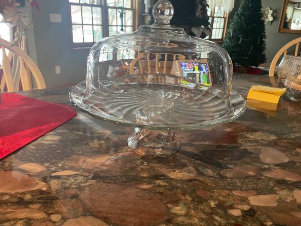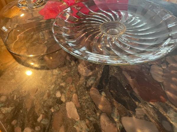 Beautiful pedestal cake plate, 12.5” round, 12” H.