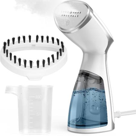 COMPACT & TRAVEL-READY: Clothes Steamer Handheld Lightweight at only 1.32 lbs, this steamer is ideal for on-the-go wrinkle removal. Easily fits in a suitcase. Comes with bonus attachments including a fabric brush and measuring cup for enhanced versatility.