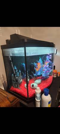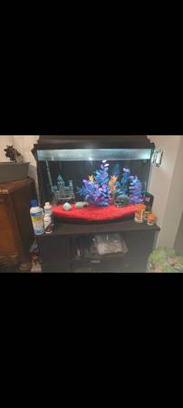 MAKE OFFER, MOVING AND MUST GO, CAN DELIVER! INCLUDES black stand pictured Fish food Decorations Cleaning supplies Water treatments Skimmer and water pump Extra filters Call or text. Located about...