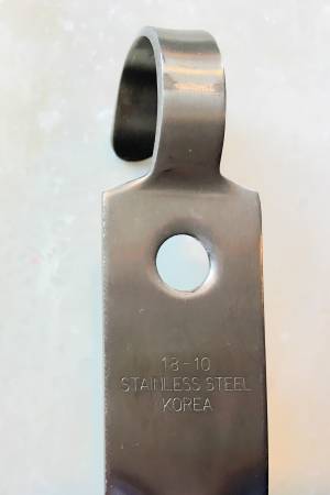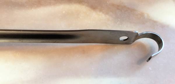 This is the last spatula you will ever need to buy. Heavy duty, very good condition. Has a hook and hole for hanging, at the end of the handle.