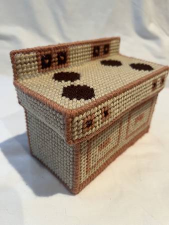 ADORABLE Vintage Plastic Canvas Kitchen Oven / Stove Recipe Box Stove top comes off to store recipes Measures approximately 6" long X 4.5" high X 3" deep NEW - Never Used! Pick up today for $18!