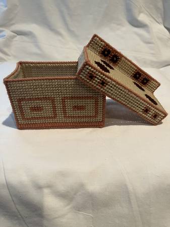 *ADORABLE* VINTAGE PLASTIC CANVAS KITCHEN OVEN RECIPE BOX -...