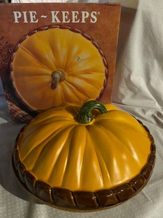 "PIE-KEEPS" CERAMIC PUMPKIN PIE PLATE and COVER - household items -...
