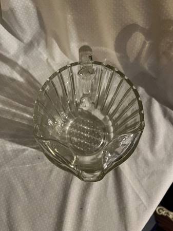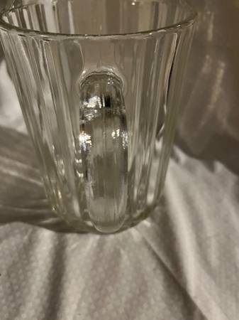 Vintage "Jeannette" Clear Glass Heavy Ribbed Pitcher with Hobnail Bottom 8” Tall - 72 oz Excellent condition - Very small smooth "chip" on underside of one lip (too small to photograph) Pick up...