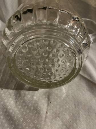 VINTAGE "JEANNETTE" CLEAR HEAVY GLASS PITCHER with HOBNAIL BOTTOM -...